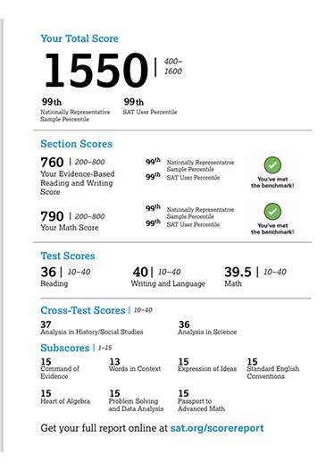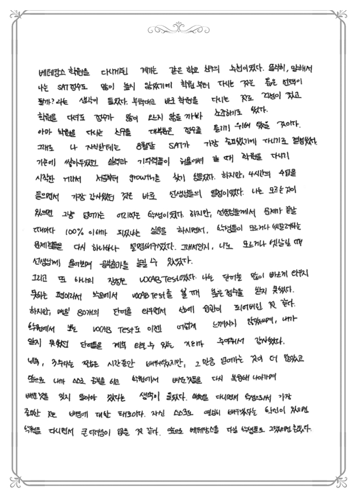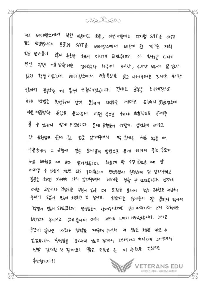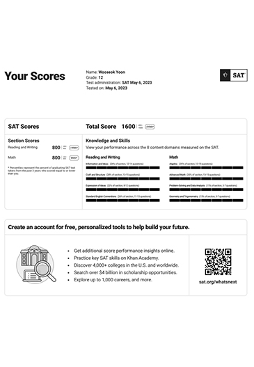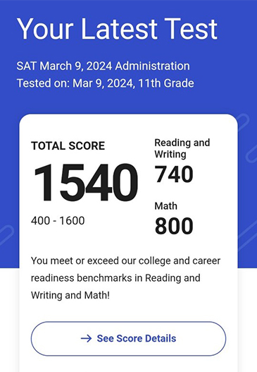 SAT 점수가 1400에서 1500 중반대로 1년 만에 올랐습니다.