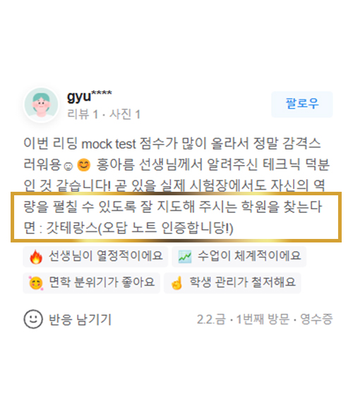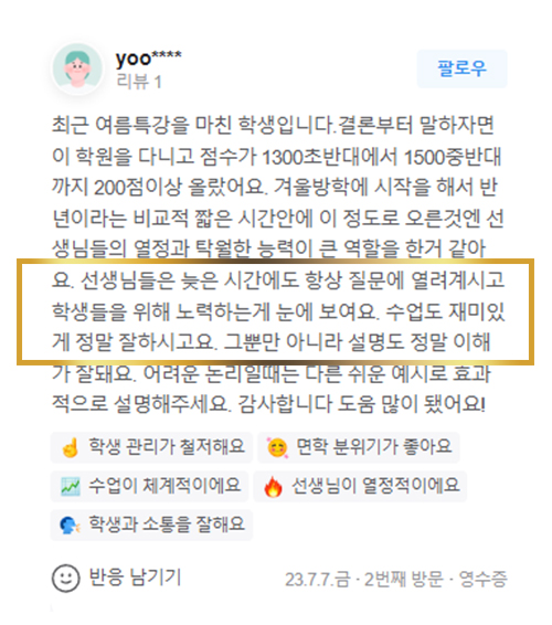 무엇보다 정말 학생들을 위하는 학원입니다.