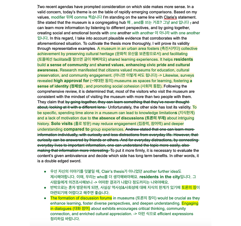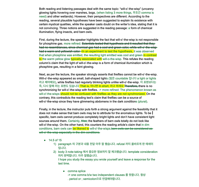 단어 교정, 필수 문장, 글의
